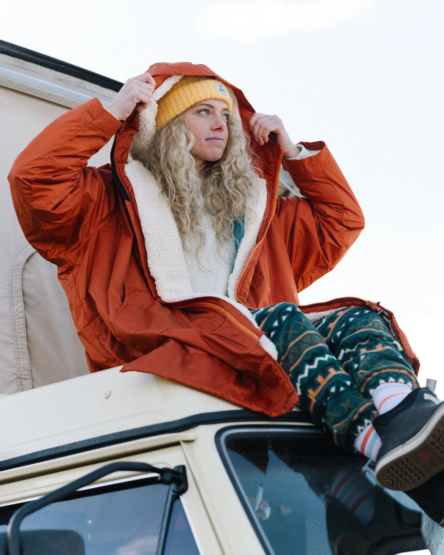 The Escapism is our changing robe with a super soft, cosy and snug sherpa fleece lining. Get changed anywhere in privacy and comfort, dry off, stay warm and keep the elements at bay. Featuring a PFC-Free water resistant coating.