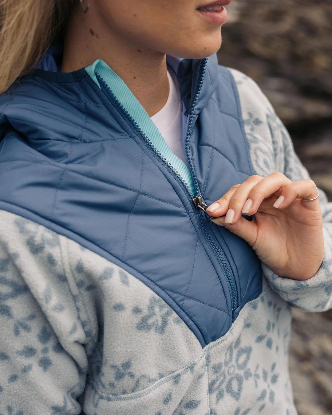Juana Recycled Polar Hooded Fleece – Large Tile Washed Blue