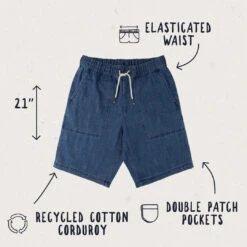Pine Recycled Cotton Cord Shorts – Washed Denim