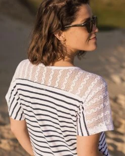 Olive Oversized Recycled Cotton T-Shirt Dress – Navy Stripe