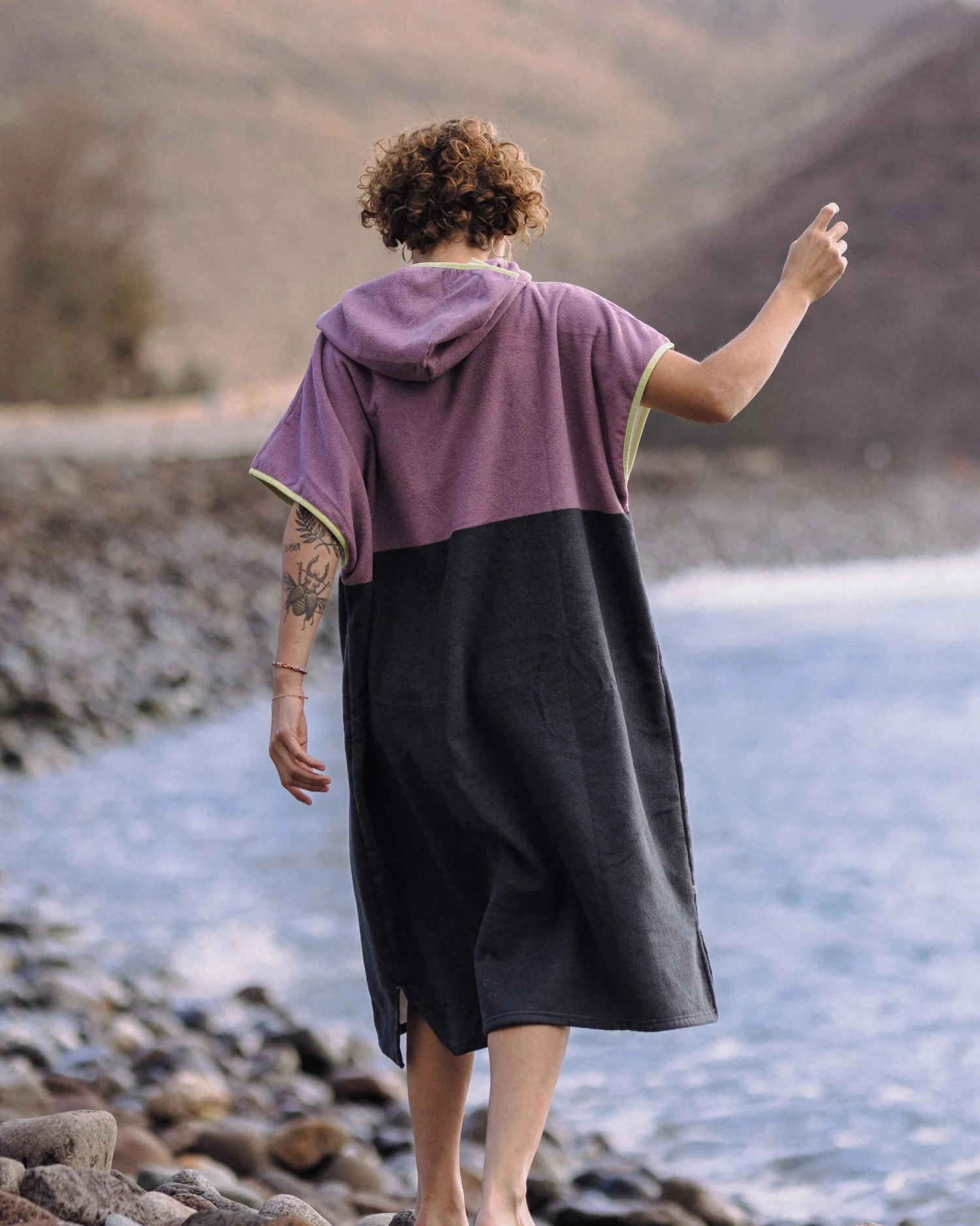 Tulum Recycled Towel Poncho – Grape / Charcoal